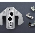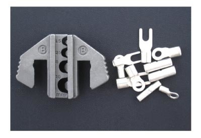 - Krimpprofiel B: Niet-geïsoleerde kabelschoenen. Dit profiel heeft4 aparte uitsparingen voor het krimpen van "kale" kabelschoenen in de maten: 1.5 mm2 / 2.5 mm2 / 6.0 mm2 en 10 mm2