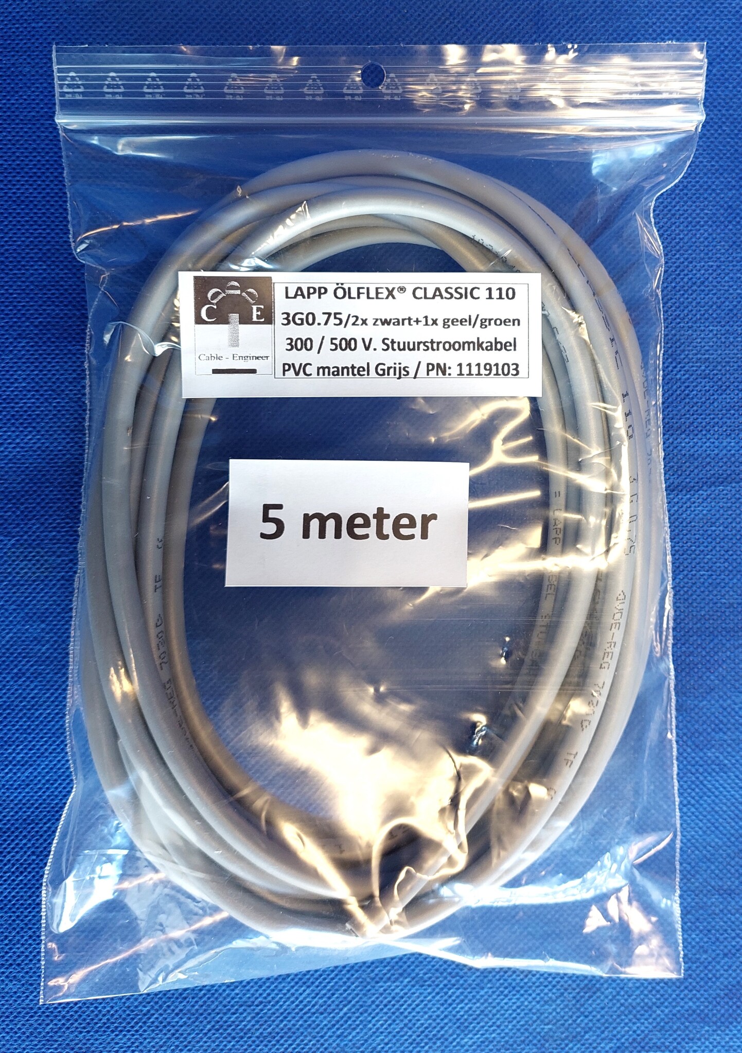 - Stuurstroomkabel van LAPP: ÖLFLEX® CLASSIC 110 - 3G0.75 - Grijs - 100m. - 1119103