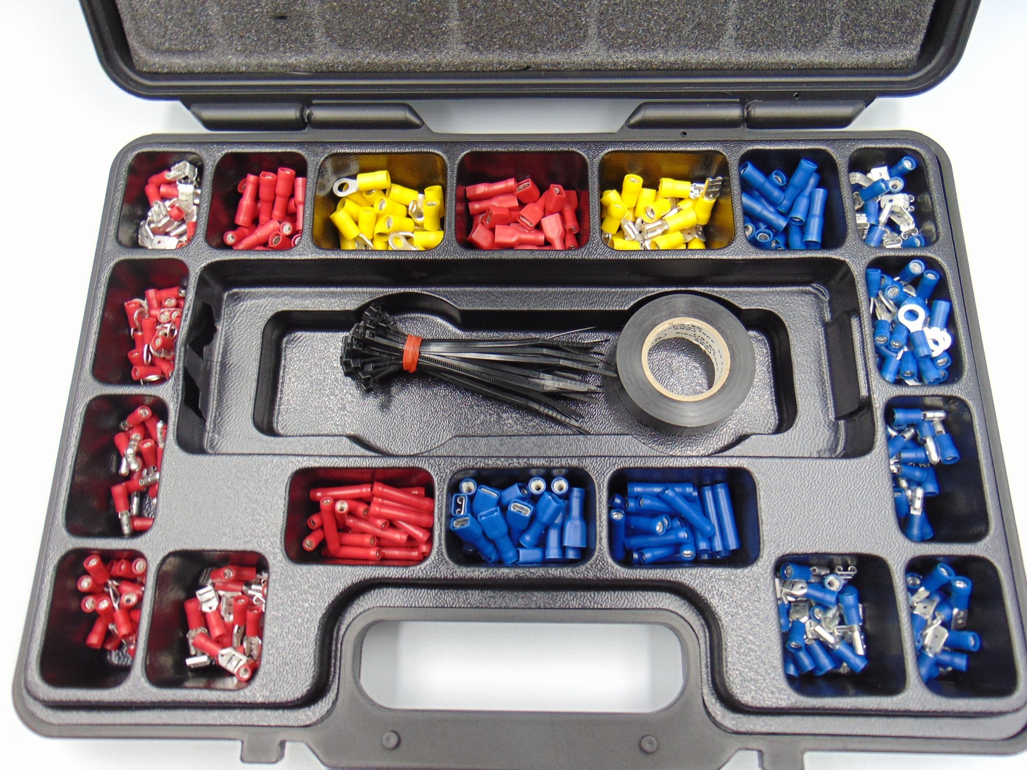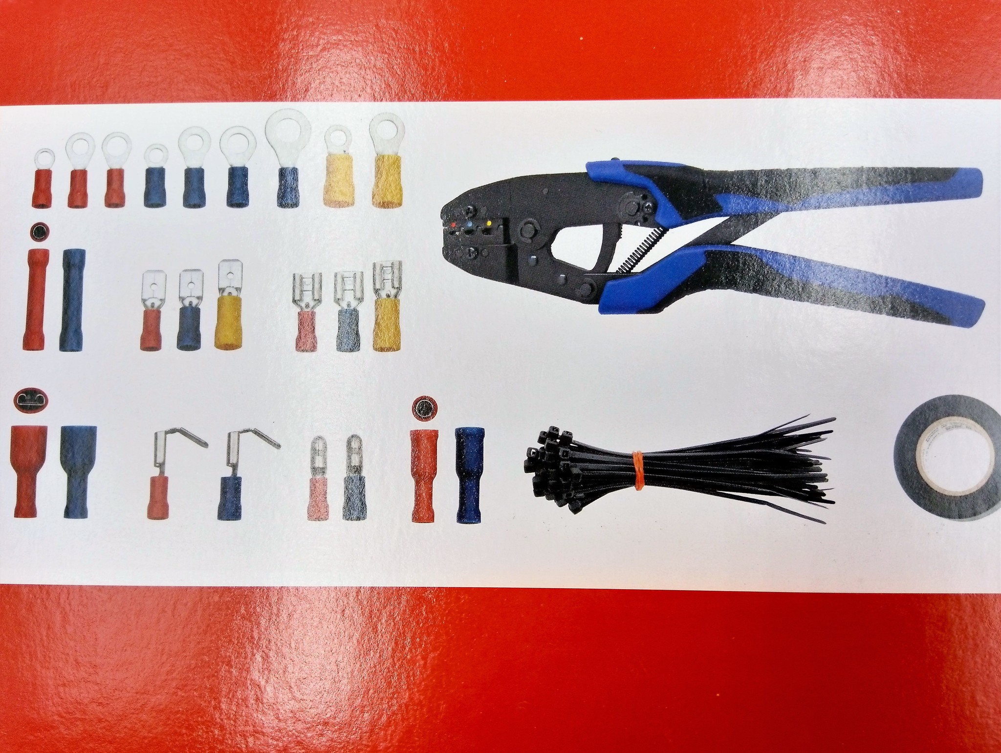 In deze kit hebben wij half geïsoleerde en volledig geïsoleerde kabelschoenen/terminals of contacten toegevoegd in combinatie met een professionele krimp tang, elektra of isolatie tape en bundelbandjes om alles netjes bij elkaar te houden.