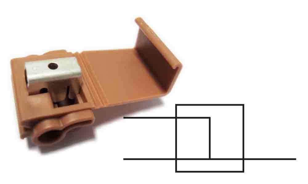 Deze Bruine Quick Splice IDC's "double tab" zijn voor draden van 0,75-2,0 / 4,0-6,0 mm2 (18 - 14 / 12-10AWG)