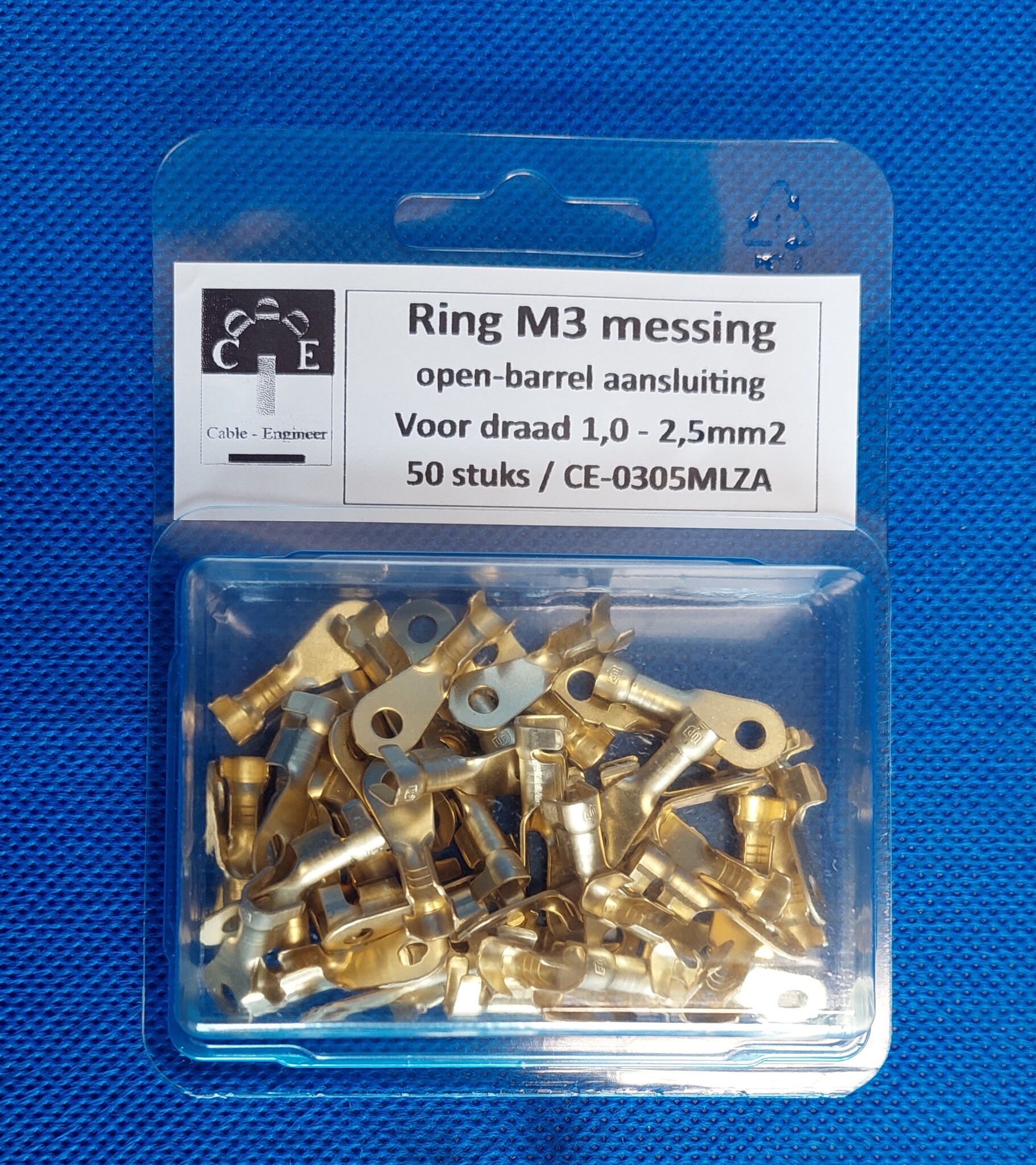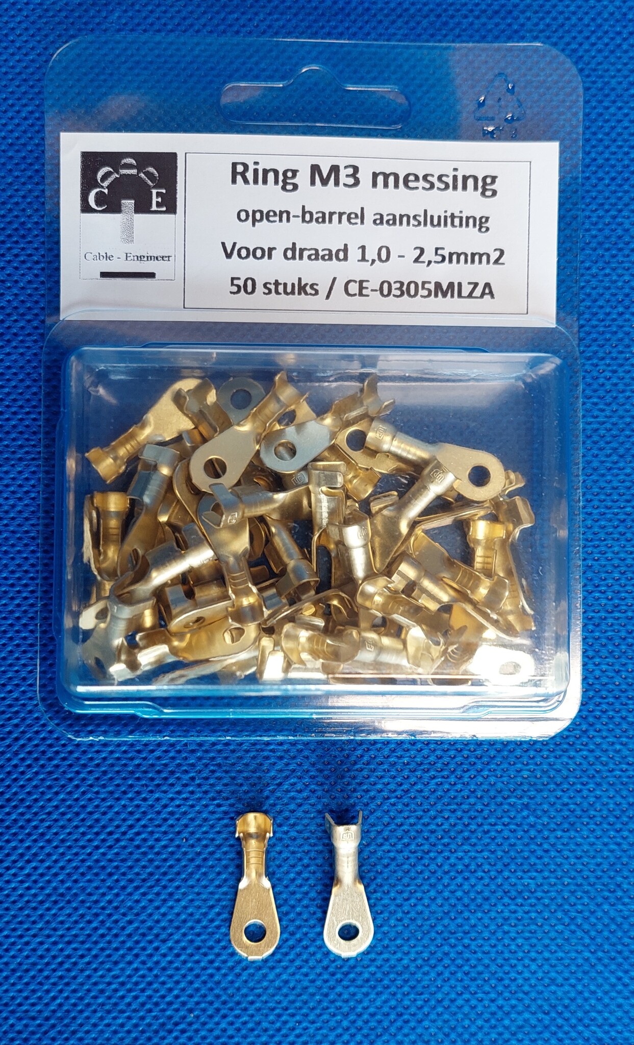 Ring M3 - Messing -open-barrel aansluiting voor draad 1,0 - 2,5mm2 - 50st.