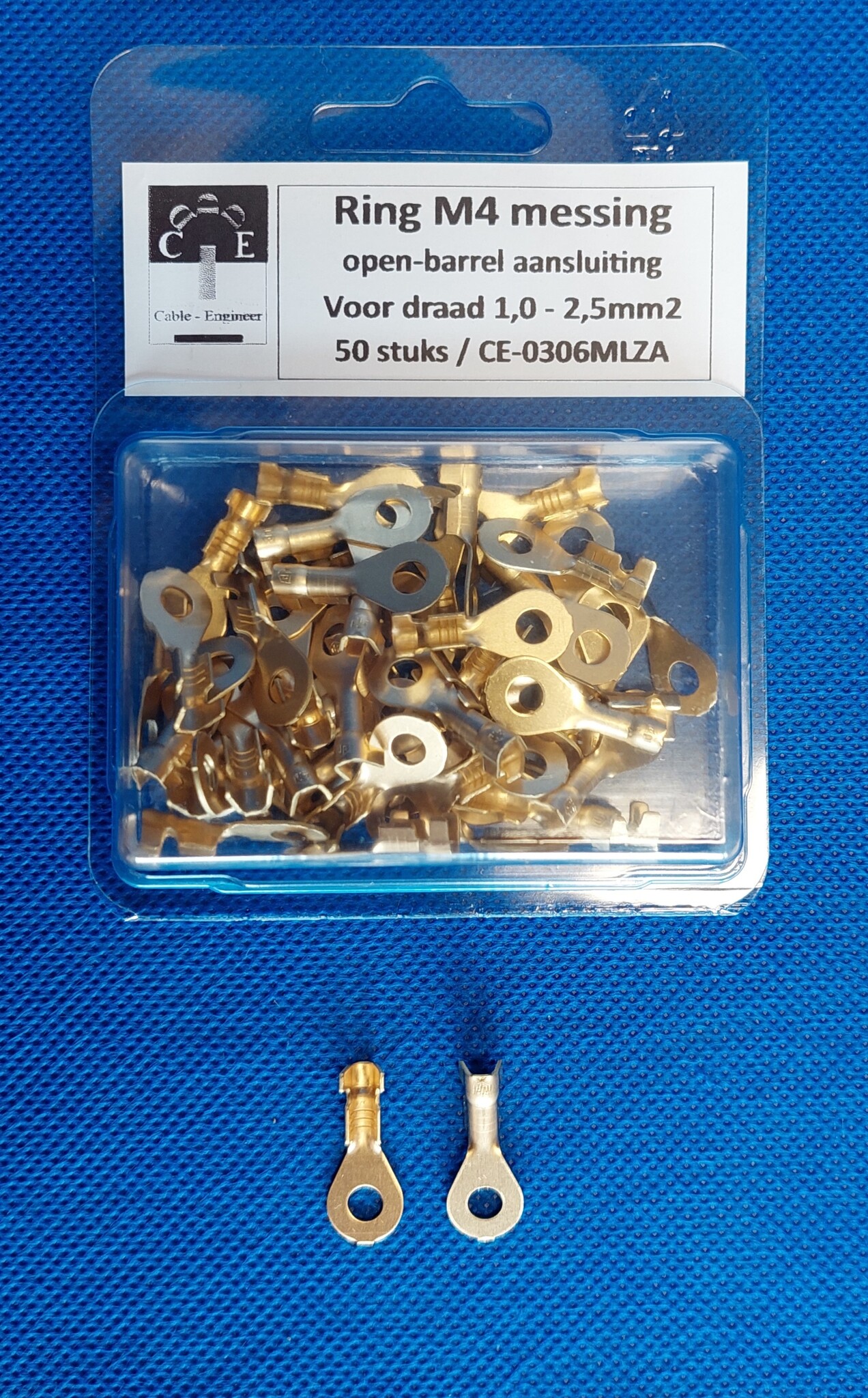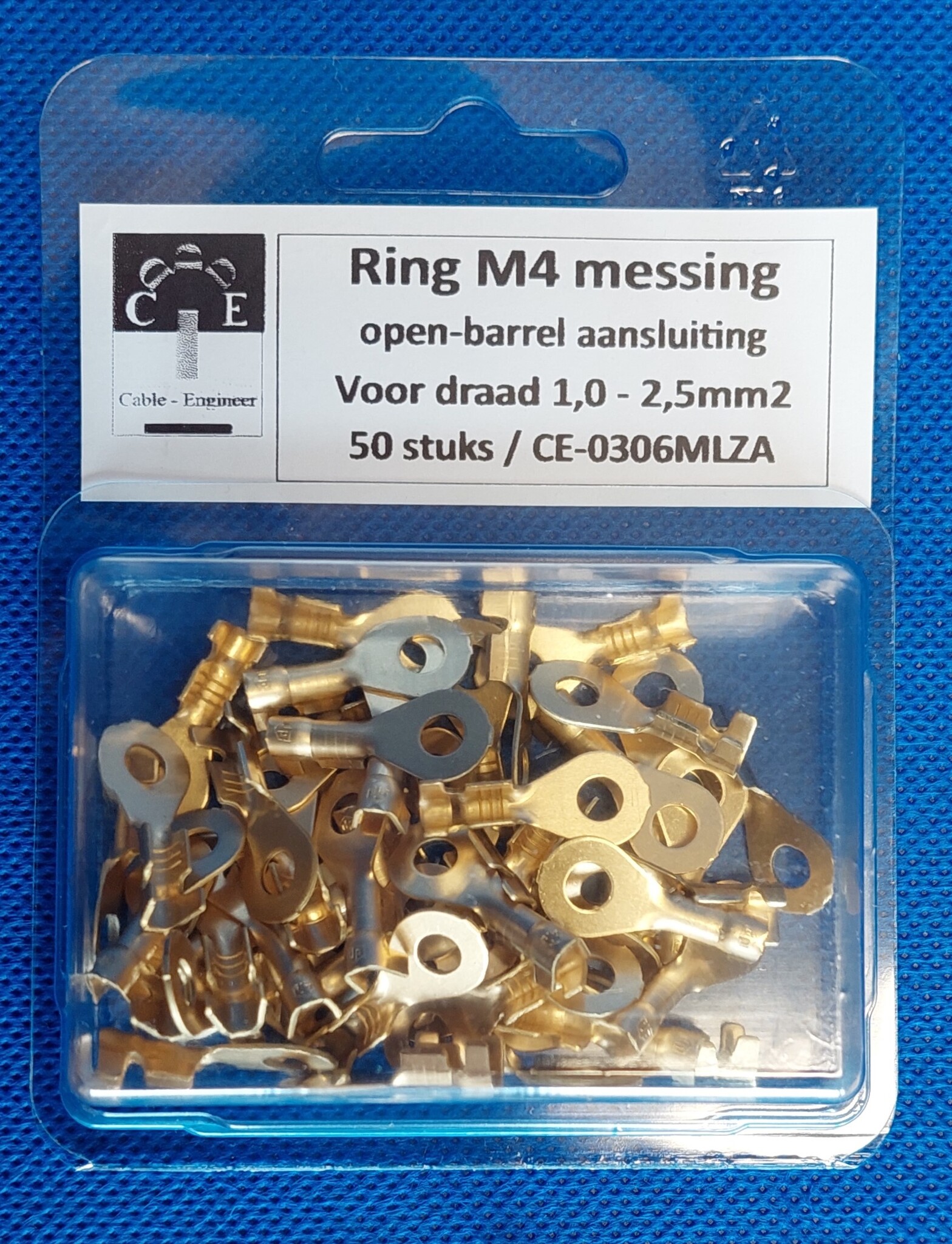 Ring M4 - Messing -open-barrel aansluiting voor draad 1,0 - 2,5mm2 - 50st.