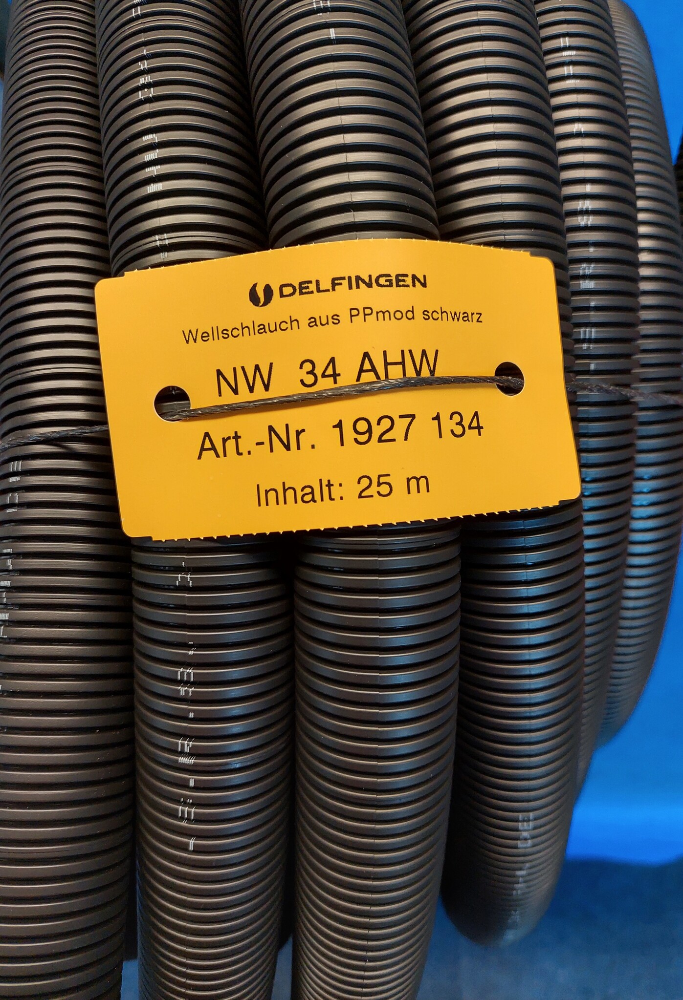 Schlemmer / Delfingen Flexibele ribbelbuis of mantelbuis NW 34 / normaal profiel - Ø29mm zonder split van PP-MOD - UV Bestendig - 25 meter gerold.