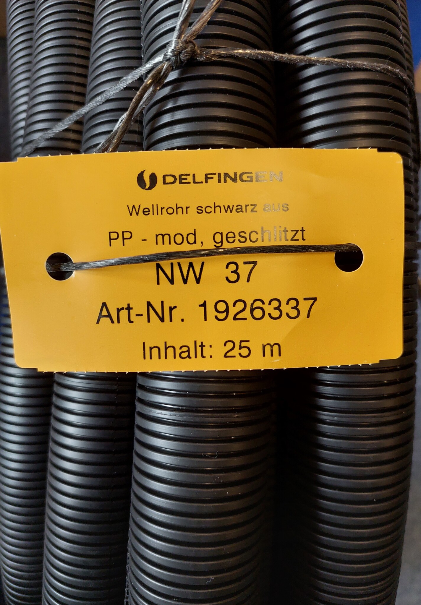 Schlemmer / Delfingen Flexibele ribbelbuis of mantelbuis NW 37 / Ø 37mm met split van PP-MOD - UV Bestendig - 25 meter gerold.