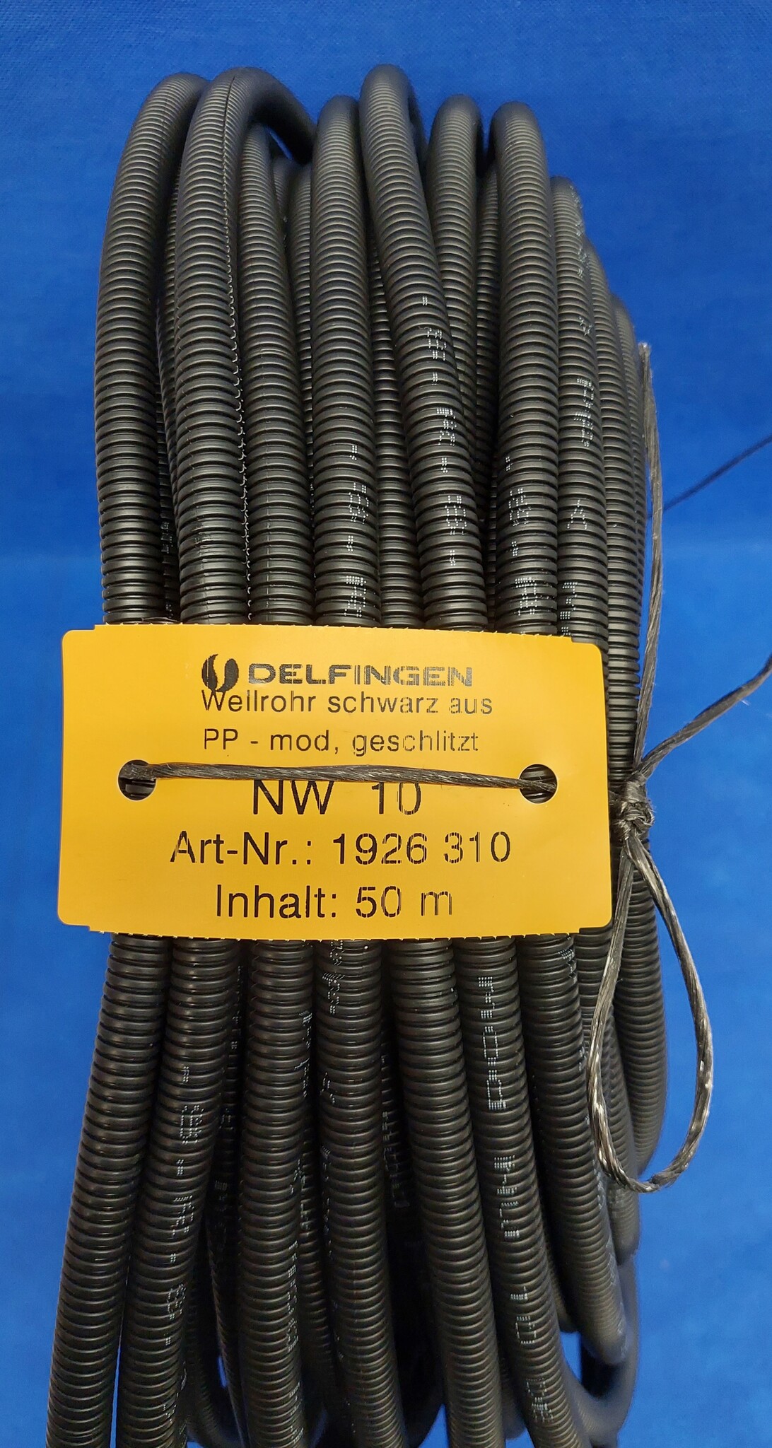 Schlemmer / Delfingen NW10 / met split: Flexibele ribbelbuis of mantelbuis NW10 van PP-MOD - Uv-Bestendig - Prijs 50 meter gerold.