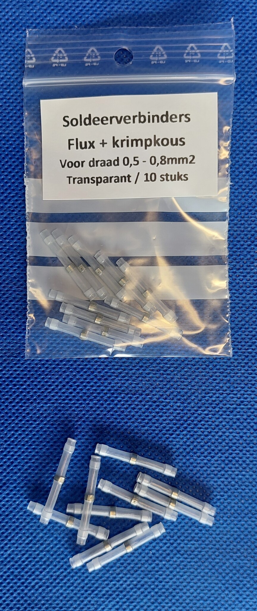 Soldeerverbinder met krimpkous huls - Transparant - voor draden 0,3 t/m 0,8 mm2 - 10 stuks