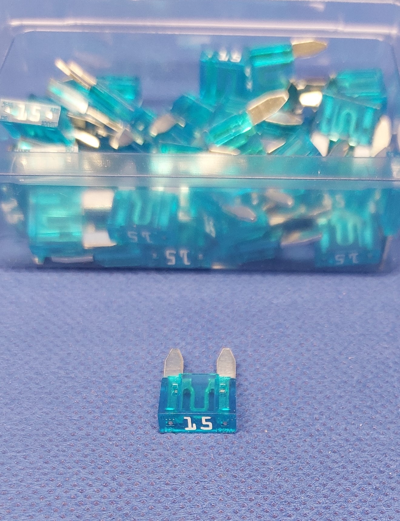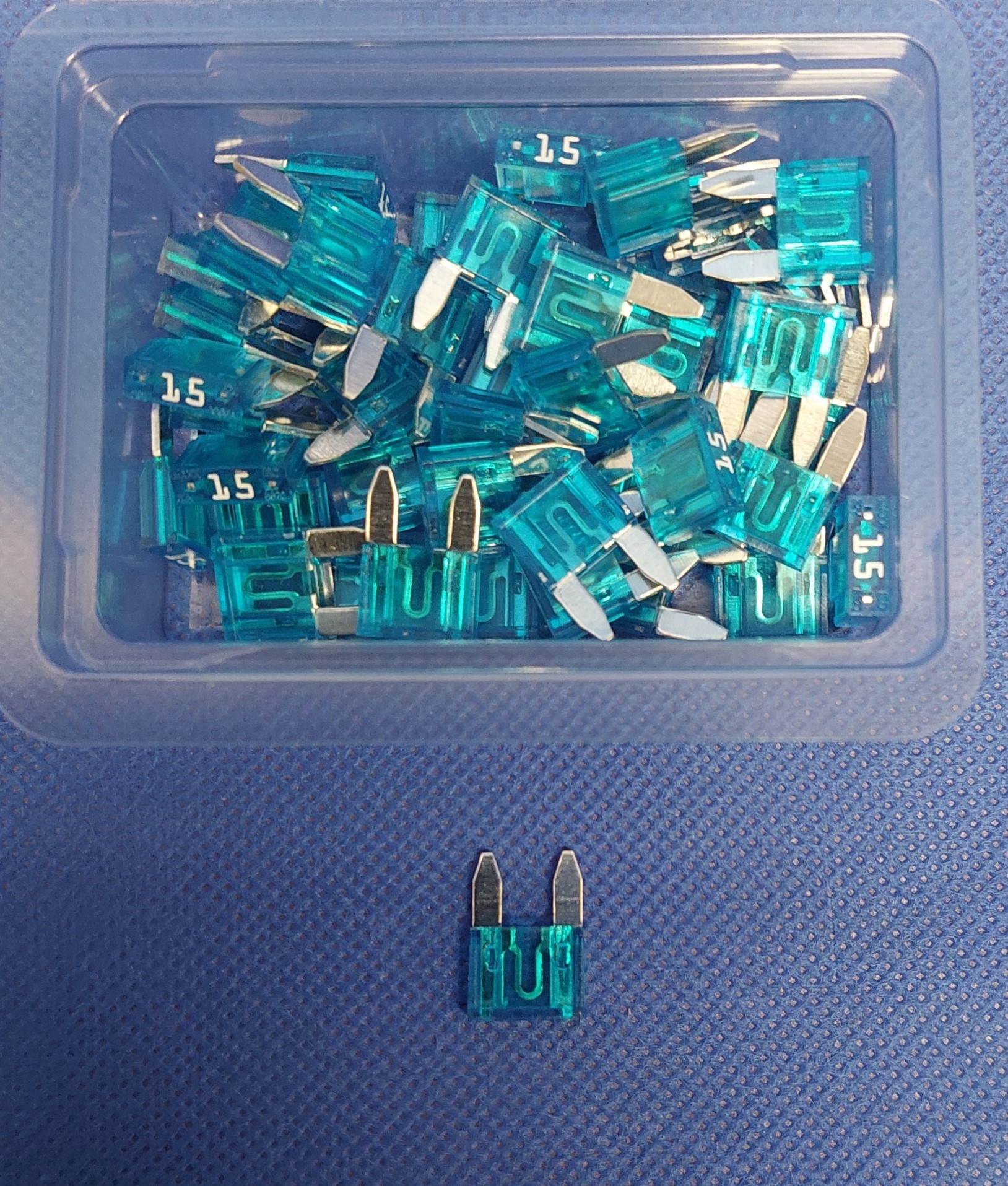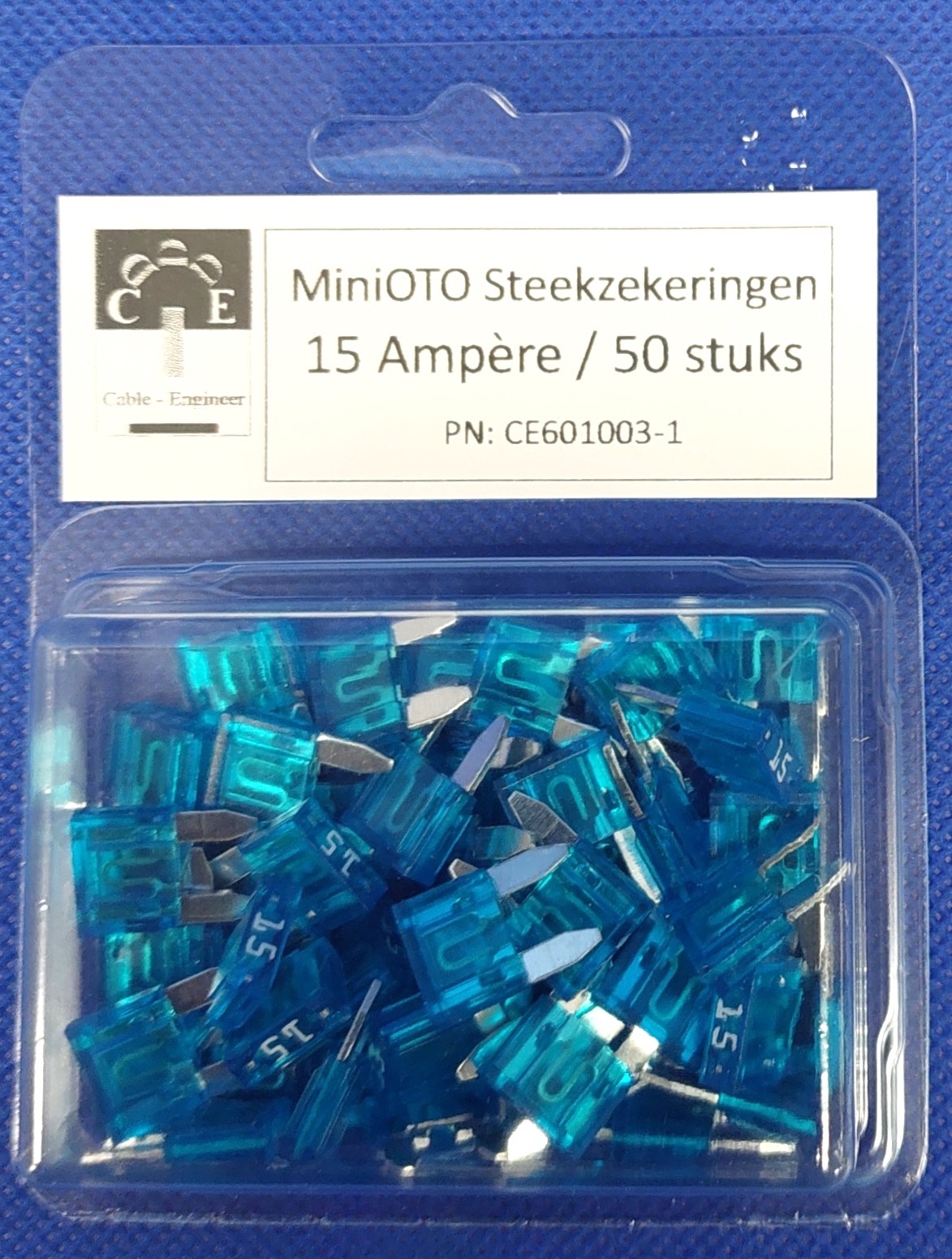 15 Ampère Steekzekeringen - MiniOTO - Blauw - 50 stuks
