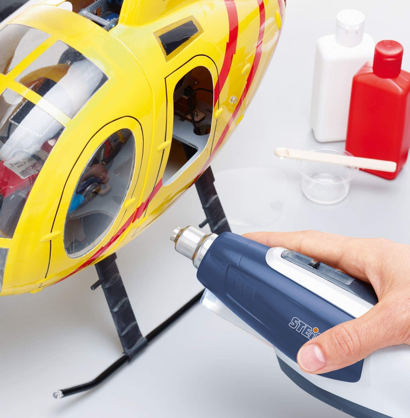 Dit compacte hete lucht pistool van Steinel met een vermogen van 350Watt is ideaal voor reparatiewerkzaamheden, modelbouw en werken op moeilijk bereikbare plekken omdat hij zeer licht en compact is en daarnaast uitgerust met led-verlichting. Door het grote stand-oppervlakte van dit pistool is hij daarnaast ook ideaal om neer te zetten zodat je met beide handen bijvoorbeeld de draad met krimpkous kan vasthouden.