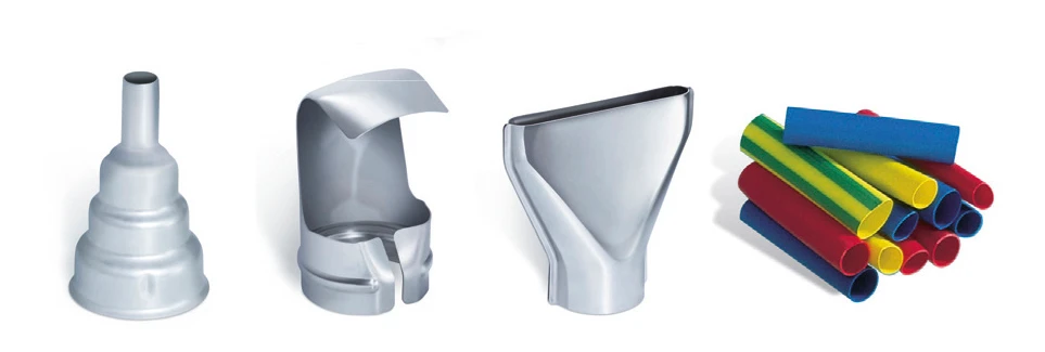 Dit pistool is verpakt in een handige opbergkoffer met daarin 3 mondstukken; reduceermondstuk / breedstraalmondstuk / speciaal mondstuk voor het krimpen van krimpkousen.