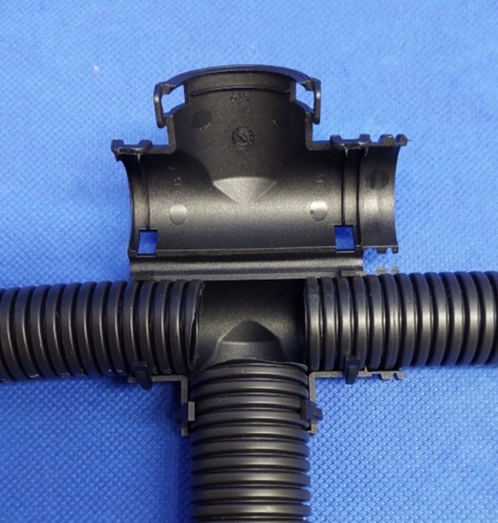 T-stuk Ribbelbuis - 17-22-17 - Vorm A - PA66 - Schlemmer 9806135 (Delfingen / ABB)