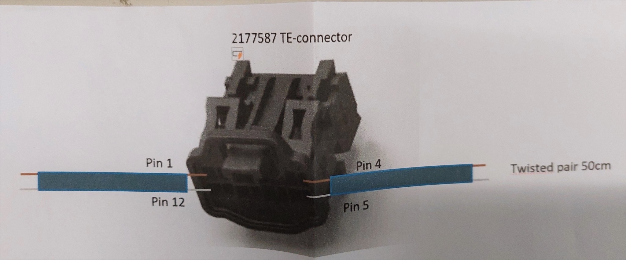 Pre-crimped Plug & Play set van TE connector 2177587-1 + 2x 50cm twisted pair cable, 4x TE Contacten and instal.
