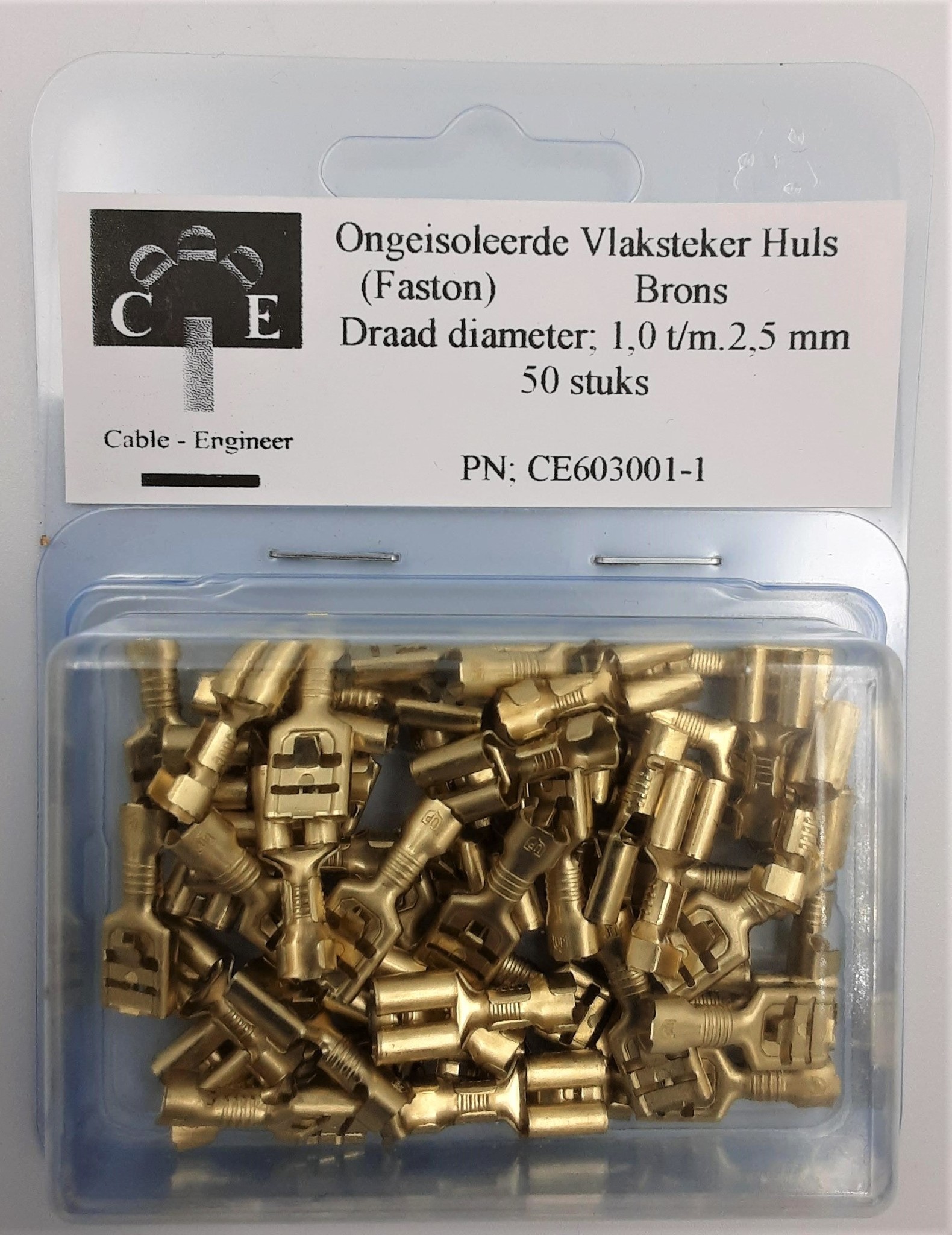 Vlakstekerhuls 6,3 x 0,8 ongeïsoleerd van Messing voor draad 1,0 - 2,5mm2 - 50st.