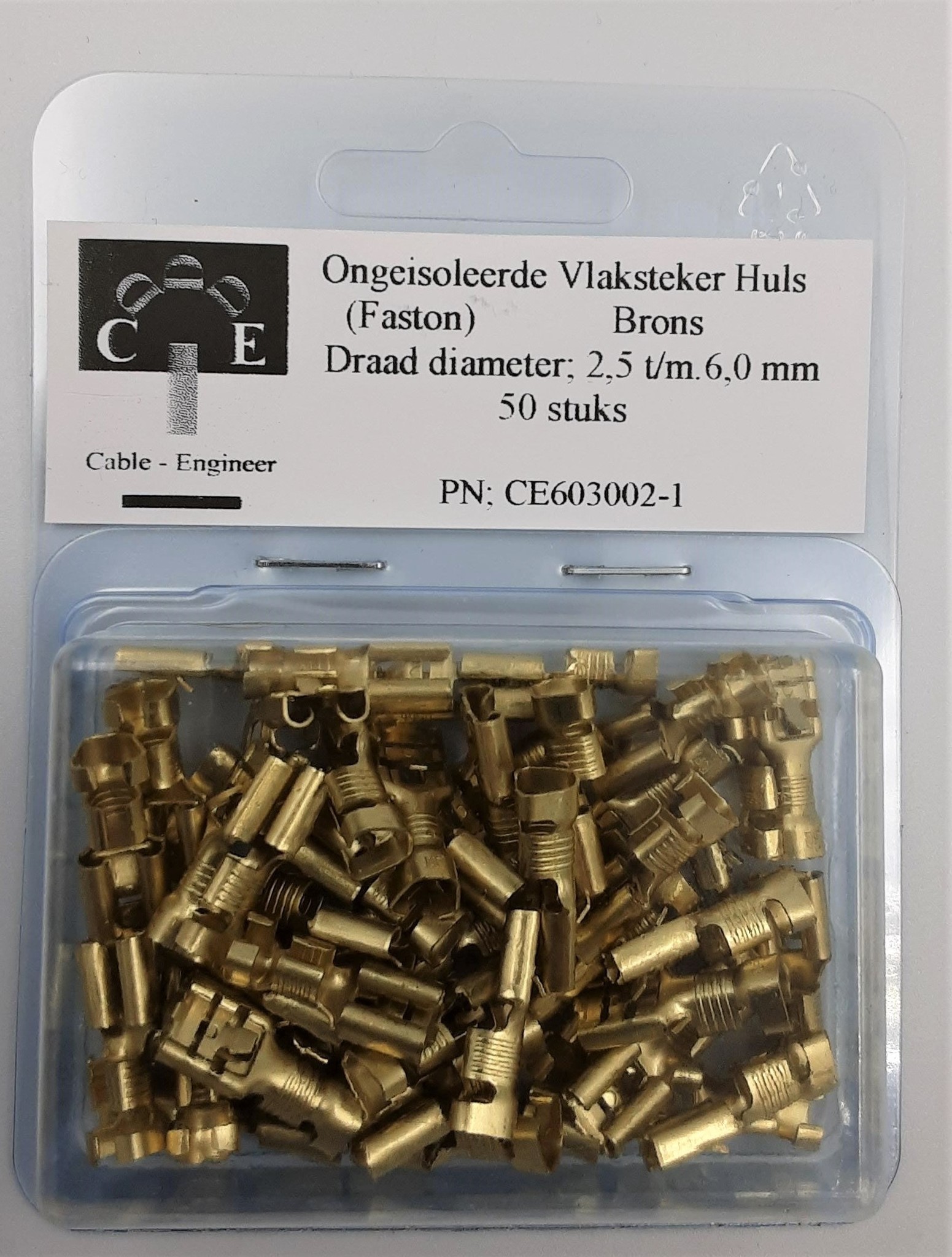50x Vlakstekerhuls 6,3 x 0,8 - ongeïsoleerd Messing met "open barrel" krimp-aansluiting voor draad 2,5 - 6,0mm2