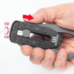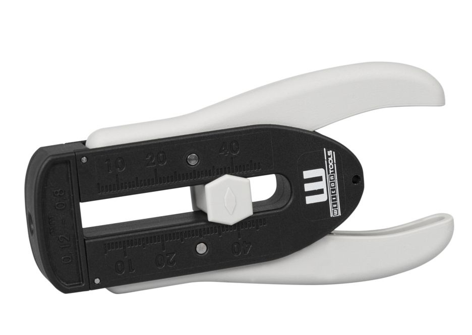 Slimme en handige precisie striptang van WEICON met ESD bescherming en automatisch scan-systeem voor het waarnemen van de kabeldiameter zodat er geen schade aan het geleidende materiaal ontstaat.