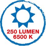 De LED lamp heeft 3 standen met 50, 127 of 250 lumen en is erg eenvoudig en snel te bedienen met knopje aan de zijkant.