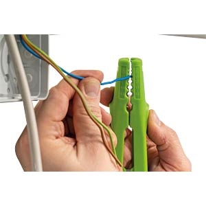 Aan de zijkant, bovenin de kop heb je 6 uitsparingen voor het precies strippen van stroomdraden van 0,50 / 0,75 / 1,5 / 2,5 / 4,0 / 6,0 mm2