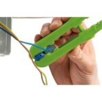 Vlak daarnaast zit een kort mespuntje voor lengte-snijden (insnijden) van je kabelisolatie en helemaal achterin het gereedschap zit een kabelschaar/knipper voor het netjes afsnijden van je draden en kabels.