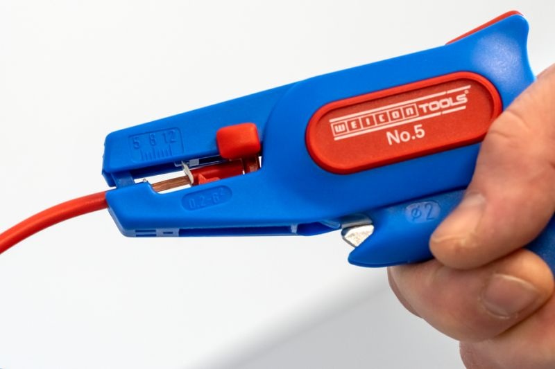 - Weicon No. 5: Automatische draadstrip-tang voor het strippen van alle gangbare massieve en flexibele draden van 0,2 t/m 6,0 mm2