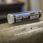 Industriële reparatieplamuur voor metalen. WEICON Repair-stick Staal is speciaal ontwikkeld voor het repareren en verlijmen van metalen en speciaal geschikt voor het repareren en herstellen van scheuren, gaten, lekkages en openingen.