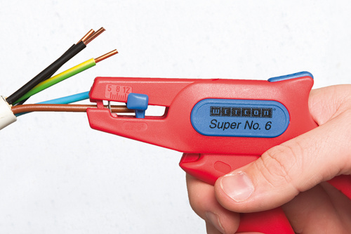 Ideale en ook nog eens de veiligste kabelstripper om mee te werken; Weicon No. 6 VDE-1000V.