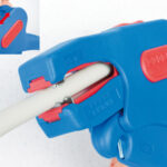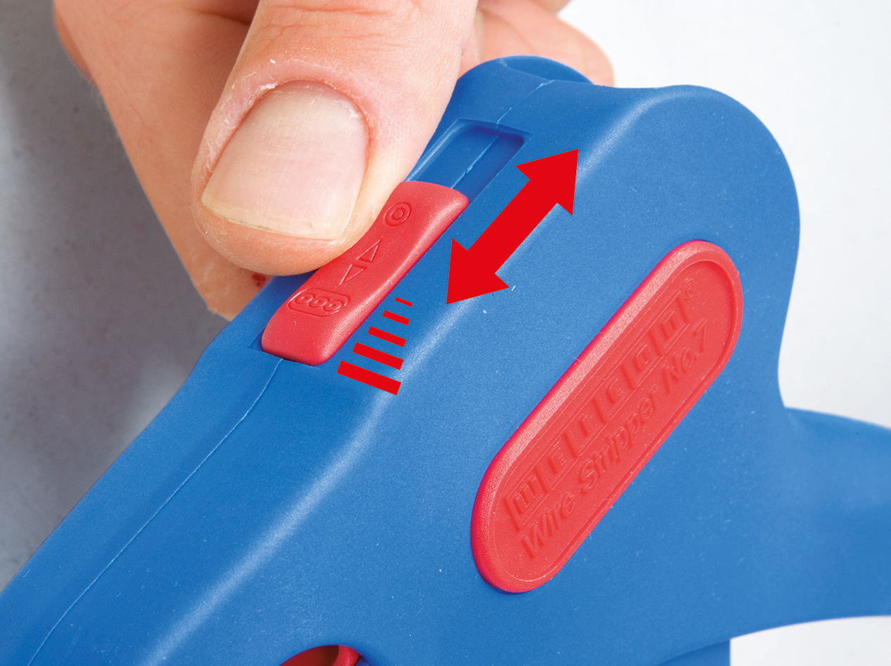 Deze Weicon No. 7 Magic is ook uitgevoerd met een stelknop aan de bovenkant waarmee je de kracht van het gereedschap kan aanpassen. Hierdoor kan je met deze striptang ook de dikkere en hardere kabelisolaties strippen.