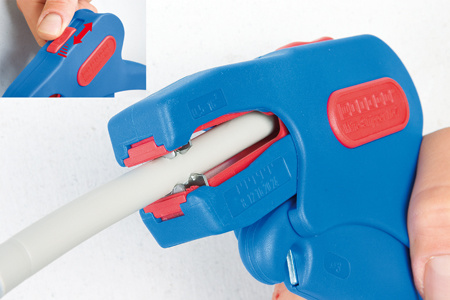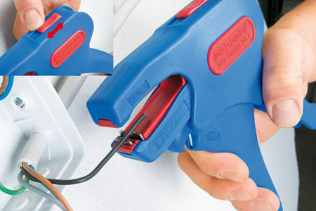 Automatische kabelstripper die erg sterk is en door zijn ruime bereik en extra zij-kniptang de ideale striptang om mee te werken.