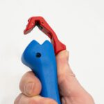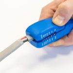 Aan de basis van het handige gereedschap zijn twee extra messen geïnstalleerd. Deze worden gebruikt voor het parallel doorsnijden van de buitenmantel of isolatie. Dit betekent dat de buitenste mantel gemakkelijk kan worden verwijderd, zelfs in zeer krappe ruimtes, zoals aansluitdozen of kabelgoten.