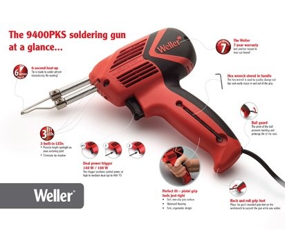 Weller Product Info: https://cdn.webshopapp.com/shops/296576/files/405552777/weller-140w-soldeerpistool-9400-product-specificat.pdf